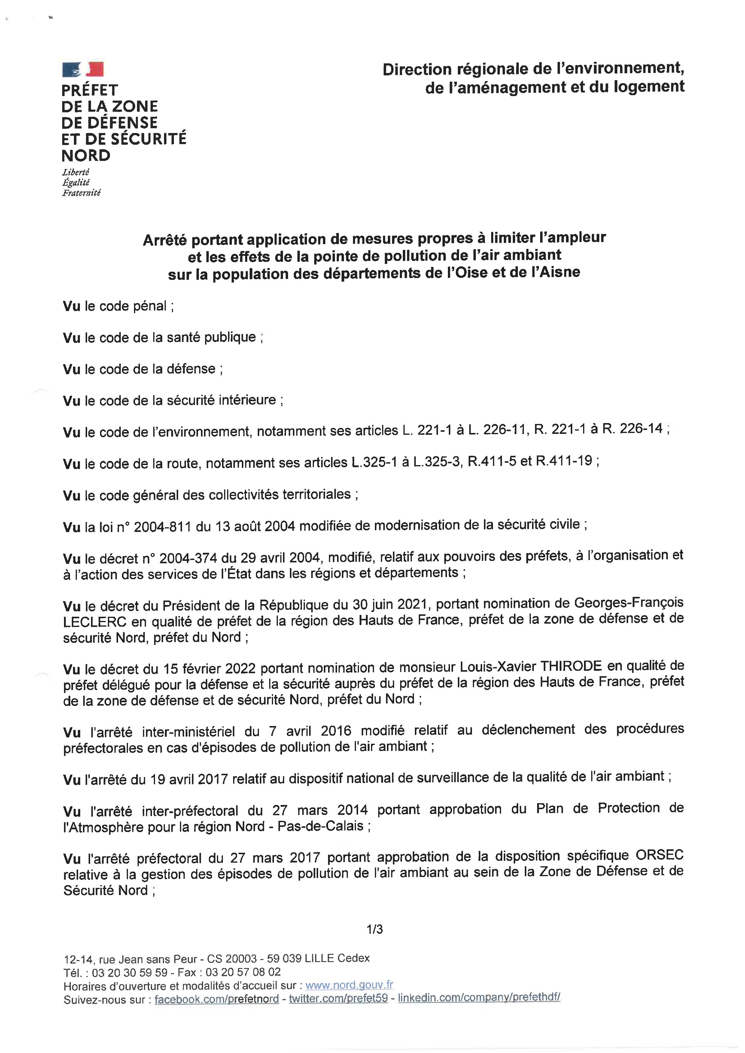 Arrêté pour limiter la pollution de l'air jusqu'au 10/02/2023